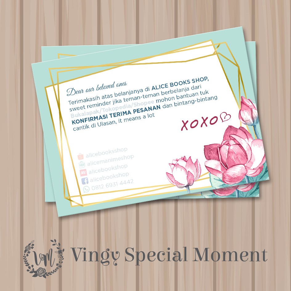 Bedanya ucapan yang akan ditulis di kartu adalah berupa kalimat ucapan terima kasih bagi para konsumen online shop atau bisnis kamu.